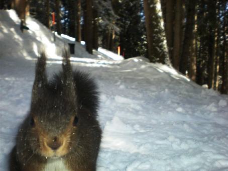 Übrigens, Eichhörmchen sind am Morgen und nach Neuschneefällen sehr hungrig und klettern sogar die Hosen hoch! Achtung nur mit dicken Hosen und Handschuhen füttern! Die Spitzen Füsschen kratzen und wenn Si ehungrig sind knappern sie auch mal ein wenig an den Fingern!