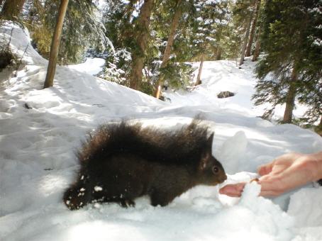 In Arosa gibt es den Eichhörnliweg, dort kann man das wirklich erleben. Auch Vögel fressen ab der Hand!