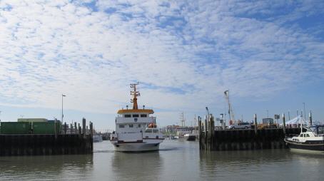 Flut kommt und dann fährt Schiff nach http://de.wikipedia.org/wiki/Langeoog