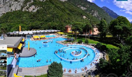 Die beiden Aussenbecken, eines hat die Grösse von mehr als 1000 m2, das Innenbecken spenden eine Temperatur von 32° bis 36° das ganze Jahr.