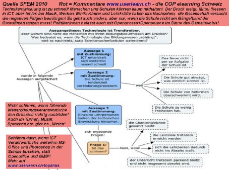 Das SFEM 2010 befasste sich mit neuen Bildungstrends, speziell auch im Hinblick auf die Berufsbildung! Es hat aber hoffentlich eine wichtige Signalwirkung auf das gesamte Bildungswesen! Die Stossrichtung dieses offenen Netzwerkes, das durch die langjährige Vizekanzlerin Frau Muralt präsidiert wird, ist seit Jahren genau das, was unsere Bildung in der Schweiz braucht, ein Netzwerk von vielfältigen Openaccess - Opensource Angeboten!