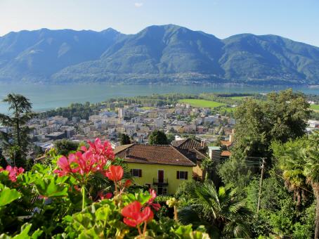 Einmalige Aussicht auf den See und Berge mit Drahtseilbahn und Bus sehr gut ab Bahnhof Locaron erreichbar. Direkter Zugh Olten Locarno!
